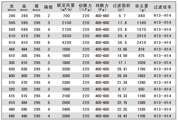 高效空氣過濾器包括有隔板高效空氣過濾器和無隔板高效空氣過濾器,有隔板高效空氣過濾器包括GK(有隔板高效空氣過濾器),GKW(耐高溫高效空氣過濾器),GKA(耐高濕高效空氣過濾器);無隔板高效空氣過濾器包括GKYW(組合式組合式高效空氣過濾器),GKYS(無隔板高效空氣過濾器),GKYC(液槽無隔板高效空氣過濾器),GKYL(超低阻無隔板高效空氣過濾器),GKYD(刀架式無隔板高效空氣過濾器),GKUL(0.1um超高效空氣過濾器)。