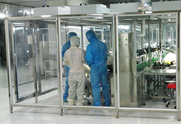 潔凈棚采用工業(yè)鋁材(或不銹鋼方通、鐵方通噴塑)作為框架,風(fēng)機濾網(wǎng)機組(FFU)送風(fēng),四周懸掛防靜電垂簾(或鋼化玻璃),其內(nèi)部凈化級別可達到100-10000級。適用于操作區(qū)內(nèi)局部凈化級別要求高的區(qū)域。